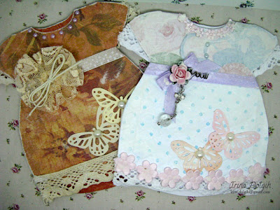 Для двух моих любимых девочек, которым исполняется годик, я приготовила такие открытки-платья: